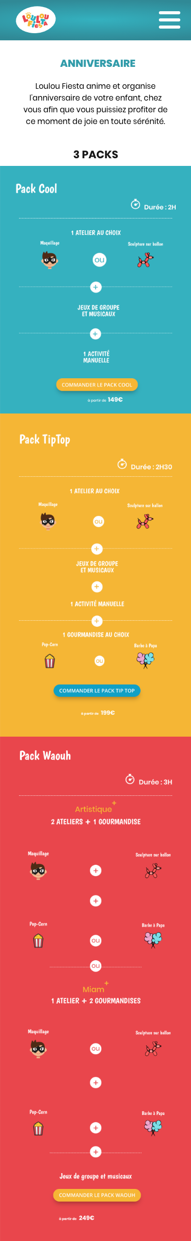 Loulou Fiesta est une société qui organise des anniversaires pour les enfants de 3 à 12 ans. Elle propose également de l’animation événementielle.